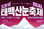 뉴스투게더 장영주 기자 | 재단법인 태백시문화재단은 오는 1월 31일부터 2월 8일까지 9일간, 태백산국립공원 일원에서 제33회 태백산 눈축제를 개최한다고 밝혔다. 올해 눈축제는 '2026 REAL 태백산 눈축제’를 슬로건으로, 시민과 관광객이 함께 소통하고 휴식을 즐길 수 있는 대한민국 대표 겨울축제로서의 위상을 더욱 강화하기 위해 본격적인 준비에 들어갔다. 축제는 1월 31일 오후 1시 제막식을 시작으로 막을 올리며, ▲전문 눈 조각 전시 ▲대형 눈썰매장 ▲얼음썰매장 ▲이글루 카페테리아 ▲실내 키즈놀이터 등 총 27개 체험 프로그램이 운영된다. 축제장은 오전 10시부터 오후 5시까지 운영되며, 9일간 다채로운 볼거리와 즐길거리로 방문객을 맞이할 예정이다. 눈 조각 전시는 태백의 지역 콘텐츠와 대한민국 K-콘텐츠를 주제로 한 ‘스노우 랜드(Snow Land)’로 조성된다. 2026년 병오년(丙午年)을 상징하는 붉은 말 게이트를 시작으로, 청정도시 태백을 상징하는 조형물과 한국의 보물·문화 콘텐츠를 형상화한 대형 전문 눈 조각 작품들이 축제 기간 내내 전시된다. 특히 올해는 야간 개장을 새롭게 도입