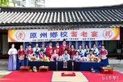 뉴스투게더 장영주 기자 | 원주향교는 지난 23일 명륜동 원주향교에서 2025년 기로연(耆老宴)을 개최했다. 기로연은 조선 태조가 나이가 많은 고관들을 예우하기 위해서 기로소(耆老所)를 설치하고 관직에 있다가 퇴직한 70세 이상의 문신을 초대해 봄과 가을에 연회를 베푼 것에서 유래했다. 현재는 조상을 숭배하고 웃어른을 공경하는 경로효친(敬老孝親) 사상과 전통의 미풍양속(美風良俗)을 계승하자는 의미로 원주향교에서 매년 개최되고 있다. 이번 기로연에서는 관내 90세 전후 어르신 중 사회의 덕망과 공로가 있으신 분을 주빈(主賓)으로 선정했다. 원주향교 원용묵 전교와 원강수 시장, 조용기 시의장이 주인(主人)이 되어 주빈인 어르신을 맞이하며 행사의 문을 열었으며, 어르신 공경의 의미를 담은 장수주를 헌작하고 장수를 기원했다. 원강수 원주시장은 “오늘 행사에 주빈으로 참석하신 어르신들의 만수무강을 기원한다”라고 말했다.