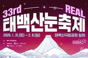 뉴스투게더 장영주 기자 | (재)태백시문화재단은 제33회 태백산 눈축제의 공식 포스터를 공개하고 본격적인 홍보에 나섰다고 밝혔다. 제33회 태백산 눈축제는 오는 2026년 1월 31일부터 2월 8일까지 태백산국립공원 일원에서 열릴 예정으로, 이번 축제는 ‘2026 RE⧗AL 태백산 눈축제’를 슬로건으로 시민과 관광객이 함께 참여하는 체류형 겨울축제로 운영된다. 공개된 공식 포스터는 ‘33rd REAL 태백산 눈축제’를 메인 타이틀로, 이번 축제의 주제인 ‘REAL’을 직관적으로 배치해 축제의 방향성과 정체성을 명확히 전달한다. ‘REAL’은 △항상 기억에 남는 축제(REMEMBER ALWAYS) △시민과 함께 소통하는 축제(REPLY ALWAYS) △휴식이 공존하는 축제(RELAX ALWAYS)를 의미한다. 포스터는 와인 컬러 톤을 바탕으로 한 겨울 산세와 조명 연출을 통해 눈축제 특유의 따뜻하고 안정적인 분위기를 표현했으며, 천제단과 태백시 마스코트 ‘태붐이’, 겨울 체험 장면 등을 배치해 태백만의 지역성과 가족 친화적 이미지를 함께 담아냈다. 문화재단은 축제의 인지도와 친근감을 높이기 위해 올해