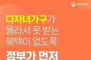 뉴스투게더 장은미 기자 | ■ 다자녀가구가 몰라서 못 받는 혜택이 없도록 정부가 먼저 챙겨드립니다! ▷ 혜택알리미 - 내가 몰라도 찾아서 알려주는 개인 맞춤형 알림 서비스 · 다자녀 국가장학금 · 사회적 배려대상자 도시가스요금 경감 · 전기 요금 복지할인 · 에너지복지요금 지원 · 다자녀가구 자동차취득세 감면 ※ 소득, 거주지 등 개인별 상황에 따라 받을 수 있는 혜택은 달라질 수 있어요. ■ 청년이 몰라서 못 받는 혜택이 없도록 정부가 먼저 챙겨드립니다! ▷ 혜택알리미 - 내가 몰라도 찾아서 알려주는 개인 맞춤형 알림 서비스 · 청년 일경험 지원 · 청년농 창업투자 심층 컨설팅 · 청년주택드림 청약통장 · 청년 월세 한시 특별 지원 · 청년 문화예술패스 지원 ※ 소득, 거주지 등 개인별 상황에 따라 받을 수 있는 혜택은 달라질 수 있어요. ■ 어르신이 몰라서 못 받는 혜택이 없도록 정부가 먼저 챙겨드립니다! ▷ 혜택알리미 - 내가 몰라도 찾아서 알려주는 개인 맞춤형 알림 서비스 · 65세 이상 폐렴구균 국가예방접종사업 · 노인 무릎인공관절 수술 지원 · 노인 일자리 및 사회활동 지원
