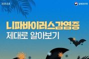 뉴스투게더 장은미 기자 | ■ 제1급 감염병 '니파바이러스감염증'이란? 니파바이러스(Nipah virus) 감염에 의해 사람과 동물 모두 감염될 수 있는 인수공통감염병입니다. 인체 감염시 40~75%의 높은 치명률을 보이나, 백신과 치료제가 없어 감염되지 않도록 주의해야 합니다. ■ 니파바이러스감염증 어떻게 감염되나요? - 감염된 동물과 직접 접촉 - 오염된 식품 섭취(대추야자수액 등) - 환자의 체액 접촉(비말, 소변 등) 자연숙주인 과일박쥐(fruit bat) 서식지 중심으로 산발적으로 발생하며, 니파바이러스에 감염된 동물과 접촉한 사람이나 오염된 식품을 먹은 가축, 환자의 체액에 직접 노출된 사람에게 전파될 수 있습니다. ■ 니파바이러스감염증 어디서 발생하나요? - 인도: 2001~2024년, 환자 104명 발생(76명 사망, 치명률 73%) - 방글라데시: 2001~2024년, 환자 343명 발생(245명 사망, 치명률 71%) 최근 인도, 방글라데시에서 지속 발생, 해당 국가 여행 시 감염 예방수칙을 준수하여 주시기 바랍니다. ■ 니파바이러스감염증 주요 증상은? 초기에 발열,
