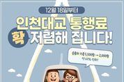 뉴스투게더 장은미 기자 | 12월 18일부터 인천대교 통행료 확 저렴해 집니다! - 승용차기준 5,500원 → 2,000원(약 63% 인하!) ■ 언제부터, 얼마나 달라지나요? 2025년 12월 18일 00시 부터 시행 인천대교 통행료 평균 인하폭은 63%… ■ 차종별 통행료 한눈에 보기 · 경차: (인하 전) 2,750원 → (인하 후) 1,000원(▼1,750원) · 소형: (인하 전) 5,500원 → (인하 후) 2,000원(▼3,500원) · 중형: (인하 전) 9,400원 → (인하 후) 3,500원(▼5,900원) · 대형: (인하 전) 12,200원 → (인하 후) 4,500원(▼7,700원) ■ 차종 한눈에 구별하기 (경차) · 배기량 1,000cc 미만 · 길이 3.6m·너비 1.6m·높이 2.0m 이하 (소형) · 승용차, 16인승 이하 승합차 · 2.5톤 미만 화물차 · 2축 차량 / 윤폭 279.4mm 이하 (중형) · 17인승 이상 버스 · 2.5톤 이상~10톤 미만 화물차 · 2축 차량 / 윤폭 279.4mm 초과 (대형) · 10톤 이상 대형 트