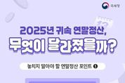뉴스투게더 장은미 기자 | ■ 2025년 연말정산 혜택 종합안내 · 국세청이 2025년 귀속 연말정산부터 새롭게 적용되는 공제·감면 사항에 대해 미리 알려드립니다! - 2025년 귀속 연말정산 일정 *카드 이미지 참조 - 홈택스 「간소화서비스」 개통 2026.1.15.(목) · 교육비 등 공제·감면에 필요한 소득·세액공제 자료 45종을 손쉽게 확인 가능 · 발달재활 서비스 이용증명서, 수영장·체력단련장 신용카드 등 사용(7.1. 이후)이용료 최초 제공 ■ 자녀·가족 공제, 이렇게 바뀌었습니다! · 자녀세액공제 상향 - 8세 이상 20세 이하 기본공제 대상 자녀 수에 따른 자녀세액공제 금액 10만 원 상향 *자녀 1명(25만 원), 2명(55만 원), 3명(95만 원), 4명(135만 원) 등 · 발달재활아동 장애 증빙 인정범위 확대 - 발달재활서비스 이용증명서 만으로 장애인 추가공제(200만 원) 가능 *발달재활서비스를 지원받는 아동이 9세 미만 · 중소기업 취업자 감면 합리화 - '25.3.14. 이후 중소기업 재취직한 남성 근로자도 취업일로부터 3년간 소득세의 70% 감면 &nbs