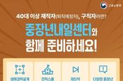 뉴스투게더 장은미 기자 | 40대 이상 재직자(퇴직예정자), 구직자라면? 중장년내일센터와 함께 준비하세요! - 생애경력설계 프로그램 : 직업역량, 가치관 분석 등 미래 경력 대안 탐색 지원 - 전직스쿨 프로그램 : 변화 관리 및 취업·전직 가능성 제시 - 재도약 프로그램 : 구직의욕 고취 및 구직 스킬 향상 지원 - 다양한 중장년 정책 안내 : 일경험, 지원금, 일자리 등 정보제공 · 비용 부담 ZERO! 전액 무료! · 간편한 온라인 신청 가능! 전국 38개 중장년내일센터로 오세용!