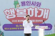 뉴스투게더 김인숙 기자 | 이상일 용인특례시장은 19일 처인구 마평동의 ‘SERI PAK with 용인’ 앞 천연잔디광장에서 열린 ‘2025 용인시와 행복하개’ 축제에 참석해 반려동물 가족과 함께 소통하는 시간을 가졌다. 이번 행사는 반려동물과 시민들이 함께 어울리며 공존할 수 있는 문화를 확산하고, 유기동물 입양을 장려하기 위해 마련됐다. 이날 행사장에는 가족 단위 시민과 반려인 등 5000여 명이 방문해 축제 분위기를 함께 즐겼다. 이상일 시장은 인사말에서 “시는 매년 반려동물과 함께하는 축제를 열며 반려문화 확산과 동물복지 향상을 위해 꾸준히 노력하고 있다”며 “지난해까지 시청 광장에서 열렸던 행사를 올해는 더 좋은 환경에서 시민과 반려동물들이 축제를 즐길 수 있도록 이곳 천연잔디광장으로 옮겨 개최했다”고 말했다. 이 시장은 “용인 시민 110만명 중 25만여 명이 15만 반려동물과 함께하고 있다”며 “앞으로도 반려동물 복지증진과 시민 인식개선을 위한 정책을 지속적으로 추진해 나가겠다. 화창한 가을 날씨 속에서 반려동물과 함께 즐거운 추억 많이 남기시길 바란다”고 했다. 이 시장은 행사장에 설치된 모든 부스를 둘러보며 반려인들과 소통했으며, 유기동물 입