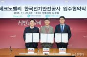 뉴스투게더 이현진 기자 | 양주시가 21일 시청 상황실에서 한국전기안전공사, 경기주택도시공사(GH)와 한국전기안전공사 경기북부본부의 경기양주 테크노밸리 입주를 위한 3자 협약을 체결했다. 이날 협약식에는 강수현 양주시장, GH 오완석 균형발전본부장, 한국전기안전공사 서영환 경영지원처장을 비롯한 관계자 10여 명이 참석해, 경기양주 테크노밸리를 경기북부 신산업 생태계의 핵심 거점으로 육성해 나가겠다는 의지를 함께했다. 경기양주 테크노밸리는 양주시 마전동 일원에 양주시·GH·경기도가 공동으로 조성 중인 21만8천㎡(약 7만 평) 규모의 첨단산업단지로, 첨단제조업 및 ICT 산업을 기반으로 한 직‧주‧락‧학(職住樂學) 복합 인프라를 갖춘 경기북부 혁신거점으로 조성되고 있다. 전기·에너지 안전 분야 대표 공공기관인 한국전기안전공사는 AI·빅데이터 기반 사고예방 시스템을 도입해 첨단 안전관리 혁신을 추진하고 있으며, 신재생에너지·ESS 등 미래형 에너지 분야의 안전 기반 구축을 선도해 왔다. 양주시는 이번 입주를 통해 경기양주 테크노밸리가 안전과 혁신이 결합된 스마트 산업단지로 한 단계 도약할 것으로 기대하고 있다. &