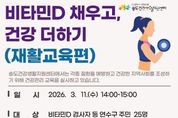 뉴스투게더 김인숙 기자 | 연수구 송도건강생활지원센터는 주민들의 골다공증, 근감소증 등 근골격계 질환을 예방하고 건강한 노후를 지원하기 위해 ‘비타민D 채우고, 건강 더하기’ 프로그램 참여자를 3월 4일부터 모집한다. 비타민D는 뼈 건강과 면역력 강화에 필수적인 영양소로, 국민건강영양조사에 따르면 한국인의 약 90%가 혈중 비타민D 수치 부족 또는 결핍 상태인 것으로 나타났다. 특히 실내 생활이 많은 현대인들에게 비타민D 결핍은 단순한 영양 부족을 넘어, 골다공증, 대사질환, 심지어 우울감 등 정신건강 문제로까지 이어질 수 있어 일상 속 예방 관리가 매우 중요하다. 이에 센터는 오는 3월부터 비타민D의 중요성을 알리고 올바른 건강관리 습관 형성을 돕기 위해 4개 주제로 통합 프로그램을 운영한다. 주요 내용으로는 ▲골다공증, 대사증후군 등 예방 건강강좌, ▲근골격계 질환별 맞춤형 재활교육, ▲걷기・러닝・근력 운동교실, ▲ 비타민D 함유 식재료 활용 영양교실 등이 있다. 특히 올해는 이론 위주의 교육에서 벗어나, 실생활에서 쉽게 구할 수 있는 비타민D 함유 식재료를 활용한 ‘요리 교실’을