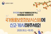 뉴스투게더 장은미 기자 | 추석 연휴 유실·유기동물을 발견하거나, 반려동물을 잃어버렸다면 국가동물보호정보시스템에 신고·게시해주세요! ■ 추석 연휴 유실·유기동물 구조 통합 신고시스템 운영으로 신속한 온라인 신고·접수 가능 · 기간: 2025.10.2.(목)~10.10.(금) · 신고 게시: 국가동물보호정보시스템 누리집 팝업창 ■ 유실·유기동물 온라인 신고·접수 방법 ① 유실·유기동물을 발견한 경우 국가동물보호 정보시스템 '동물발견' 배너 클릭 → 발견장소, 사진, 개체 특징 등 제보 등록 → 해당 지자체 보호센터 정보제공 → 지자체 동물보호센터 신속 대응 ② 반려동물을 분실한 경우 국가동물보호 정보시스템 '동물분실' 배너 클릭 → 반려동물 분실장소, 일시, 사진 등 정보 등록 → 시민 간 발견 정보 공유(댓글 창 활성화) → 필요시 분실신고 병행(등록동물 정보 변경) 유실·유기동물 구조 통합신고로 보호자를 빠르게 찾아드리겠습니다