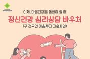 뉴스투게더 김인숙 기자 | 경산시는 우울, 불안 등 정서적 어려움이 있는 시민에게 대화 기반의 전문심리상담 서비스를 제공하는 '정신건강 심리상담 바우처사업'을 시행한다. 이 사업은 전문적인 심리상담 서비스 바우처를 제공하여 시민의 마음 건강을 돌보고 자살을 예방하며, 정신질환을 사전 예방하는 것을 목적으로 한다. 지원 대상은 ▲정신건강복지센터, 대학교상담센터, 청소년 상담복지센터, Wee센터 등에서 심리상담이 필요하다고 인정하여 의뢰서를 발급받은 자 ▲정신의료기관에서 심리상담이 필요하다고 인정하여 소견서를 발급받은 자 ▲국가 건강검진 중 정신건강 검사 결과에서 중간 정도 이상의 우울이 확인된 자 ▲자립 준비 청년 및 보호 연장 아동 ▲'동네의원 마음 건강 돌봄 연계 시범 사업'통해 의뢰된 자 ▲재난 피해자(본인, 유가족) ▲ 정신건강복지센터·자살예방센터 등록 회원이다. 대상자는 증빙서류를 지참하여 주소지 읍·면·동 행정복지센터를 방문하거나 온라인 복지포털(복지로)에서 신청할 수 있다. 선정된 대상자에게는 바우처 생성일로부터 120일 이내 대화 기반의 전문 심리상담 서비스를 총 8회 이용할 수 있는