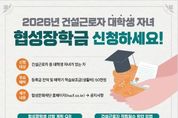 뉴스투게더 김성연 기자 | 건설근로자공제회(이사장 직무대행 권혁태)와 협성문화재단(이사장 박석귀)은 건설근로자의 대학생 자녀 학업 지원을 위해 ‘2026년 신규 협성장학생’을 선발한다. 지원대상은 건설근로자공제회에 등록된 건설근로자로 총 적립일수가 600일 이상이고, 2025년도 근로내역은 최소 100일이다. 건설근로자의 자녀 가운데 국내 4년제 대학 신입생과 2026년 기준 2~3학년 재학생을 대상으로 장학생을 모집한다. 선발 인원은 20명 내외다. 제출서류, 심사기준은 협성문화재단 홈페이지 내 공지사항을 통해 확인할 수 있다. 접수기간은 오는 12월 15일부터 내년 1월 5일까지이며, 협성문화재단에 제출서류를 등기우편으로 제출해야 한다. 서류합격자는 2026년 1월 26일 발표되며, 면접은 2월 2일부터 6일까지 진행된다. 최종 합격자는 2월 9일 재단 홈페이지에 게시되고, 2월 12일 장학증서 수여식이 열릴 예정이다. 장학생에게는 등록금 전액과 함께 매 학기 50만원의 학습보조금이 지원된다. 또한 인문학 강의, 독서 프로그램, 해외 탐방 및 봉사 활동 등 다양한 장학 프로그램 참여 기회도 제공된다. 장학생