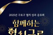 뉴스투게더 김인숙 기자 | 구로구는 이달 19일 오후 2시 구청 강당에서 ‘2025 함께하는 협치 구로 성과공유회’가 열린다고 밝혔다. 이번 성과공유회는 구로구 협치회의, 주민참여예산위원회, 공익활동지원센터가 ‘민관협력도시 구로’를 만들기 위한 1년간의 성과를 공유하며 화합의 시간을 갖고자 마련된다. 행사는 △내빈 소개 △모범 구민·우수 공무원 표창 △협치회의 성과 영상 시청 △구로구 협치사업 소개 △협치회의 로고 선정 투표 순으로 진행된다. 특히 구로구 민관협치 활성화에 기여한 구민 10명과 공무원 4명에게 표창장이 수여되며, 한 해 동안 추진된 협치의 다양한 현장을 담은 성과 영상을 상영한다. 이후에는 장인홍 구로구청장과 박민아 공동의장, 각 분과위원장들이 함께 협치 성과 토크콘서트를 진행해 협치의 의미를 함께 나눌 예정이다. 이와 함께 구로구 협치회의는 로고 선정 투표도 진행한다. 3개의 로고 후보 중에서 정보무늬(QR코드)로 투표를 진행해 최종 1건을 선정한다. 마지막으로는 민관이 자유롭게 소통하는 시간이 이어질 예정이다. 장인홍 구로구청장은 “협치사업이 정책으로 실