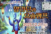 뉴스투게더 김인숙 기자 | 예산군은 아동친화도시 조성의 일환으로 가족참여형 뮤지컬 ‘알라딘과 요술램프’를 12월 21일 예산앤유행복센터에서 공연한다고 밝혔다. 이번 공연은 가족이 함께 즐기는 문화 체험을 통해 놀이·문화 영역 확대와 아동 발달권 증진을 도모하기 위해 마련됐다. 뮤지컬 ‘알라딘과 요술램프’는 원작을 아이들의 눈높이에 맞춰 재구성하고 무대체험 등 직접 참여 요소를 강화해 가족 모두가 몰입할 수 있도록 구성됐다. 관람을 희망하는 관내 아동 동반 가족은 12월 1일부터 12월 12일까지 사전 접수할 수 있으며, 선착순 모집으로 인원 충족 시 조기 마감된다. 신청은 공연 포스터의 정보무늬(QR코드)를 스캔해 신청서 작성 후 제출하는 방식으로 진행된다. 군 관계자는 “참여형 뮤지컬을 통해 관객 모두가 무대의 주인공이 돼 상상력과 감성을 키우는 특별한 시간이 되길 바란다”며 “관내 아동이 폭넓은 문화 경험을 누릴 수 있도록 다양한 프로그램을 마련해 아동친화도시 조성을 위해 노력하겠다”고 말했다. 한편 군은 아동의 권리가 존중받고 모든 아동이 행복하게 성장할 수 있는 환경