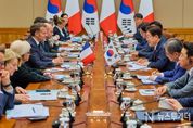 뉴스투게더 김태훈 기자 | 이재명 대통령은 4월 3일 오전 청와대에서 에마뉘엘 마크롱(Emmanuel Macron)' 대통령과 정상회담을 갖고, 올해 수교 140주년을 맞아 ‘글로벌 전략적 동반자’로 격상된 양국 관계 발전 방안과 주요 지역·국제 정세 등에 대해 심도 있게 논의했다. 이 대통령은 올해 한-프랑스 수교 140주년을 계기로 마크롱 대통령이 취임 후 처음 방한한 것을 환영하고, 우리 신정부 출범 후 국빈으로 우리 나라를 찾은 첫 유럽 정상인 만큼 의미가 더욱 각별하다 했다. 이에 마크롱 대통령은 프랑스 대통령으로서 11년 만에 방한하게 되어 뜻깊다고 전했다. 양 정상은 최근 중동 전쟁과 그로 인한 영향에 대해 심도 있는 논의를 갖고, 중동의 안정과 평화가 조속히 회복되어야 한다는 데 의견을 같이 했다. 아울러, 국가 경제 및 국민의 삶에 미칠 충격을 최소화하기 위한 거시경제 정책 대응 경험과 전략을 공유하는 한편, 원자력, 해상풍력 분야 협력 확대를 통한 에너지안보 강화 및 호르무즈 해협 내 안전한 해상수송로 확보를 위한 협력 의지를 확인했다. 이어 양 정상은 2004년 '21세기 포괄적 동반자' 관