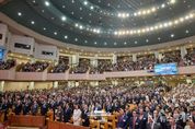 뉴스투게더 김태훈 기자 | 이재명 대통령과 김혜경 여사는 오늘 오후 여의도순복음교회에서 열린 ‘2026 한국교회 부활절 연합예배’에 참석해 부활의 의미를 되새기며 함께 예배를 드렸다. 이번 부활절 연합예배는 총 73개 교단, 7천여 명이 함께 참여한 뜻깊은 행사이다. '부활! 평화! 사랑'이라는 주제 아래, ‘생명의 부활, 한반도 평화’(요한복음 20장 19-23절)를 표어로 삼아 열렸다. 예배는 2026 부활절연합예배준비위원회 대회장인 이영훈 여의도순복음교회 담임목사의 대회사로 시작해 ▲대표기도 ▲성경봉독 ▲설교 ▲특별기도 ▲통성기도 ▲축도 순으로 진행됐다. 이재명 대통령은 축사를 통해 “해마다 개최되는 부활절 연합예배는 우리 사회에 사랑과 희망의 메시지를 전해 왔다”면서 “늘 나라와 국민을 위해 기도해 주시는 한국교회와 성도 여러분께 국민을 대표해서 감사드린다”고 전했다. 이어 “세계를 지탱해오던 평화와 번영의 질서가 약화되고, 연대와 화합이 아닌 갈등과 다툼이 심화되고 있다”면서 “이럴 때일수록 부활의 의미와 함께 오늘의 주제인 평화, 사랑의 의미를 다시 깊이 되새겨야 할 것”이라고 언급했다.