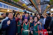 뉴스투게더 김태훈 기자 | 이재명 대통령은 30일 오후 제주 타운홀미팅 '제주의 마음을 듣다' 종료 후, 김혜경 여사와 함께 1박 2일 제주 일정의 마지막 일정으로 동문시장을 방문했다. 동문시장은 제주시 도심에 위치한 대표적인 전통시장으로, 대통령 부부의 방문 소식에 상인들과 방문객들은 놀라움 속에 환호와 박수로 이들을 맞이했다. 입구에 서 있던 한 외국인 관광객은 어디서 왔냐는 이 대통령의 질문에 “오스트레일리아”고 답하기도 했다. 이 대통령 부부는 셀카촬영과 악수를 이어가며 과일모찌 가게에 들러 온누리상품권으로 한라봉모찌와 딸기모찌를 구입해 즉석에서 강유정 대변인, 하정우 수석 등과 함께 시식했다. 이동 내내 이어지는 셀카요청에도 이 대통령 부부는 반갑게 응했다. 그러자 시장을 찾은 많은 도민들은 이동 중인 이 대통령 부부를 향해 "사랑해요", "와 대박", "화이팅"을 외치는 소리로 화답했다. 이 대통령은 특히 어린이들의 사진 요청에 적극적으로 답했다. "애기 있어요"라는 소리가 들리면 발걸음을 멈추고 아이들과 하이파이브를 하거나 반갑게 셀카를 찍었다. 또한 강아지를