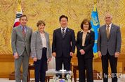 뉴스투게더 김태훈 기자 | 이재명 대통령은 4월 2일 오후 청와대에서 진 섀힌(Jeanne Shaheen) 상원 외교위원회 간사 등 공화·민주 양당 의원으로 구성된 미국 상원의원 대표단을 접견했다. 이 대통령과 미 대표단은 한미동맹 및 한반도 문제를 비롯해 중동 전쟁의 안보적·경제적 파장과 대응 방안에 대해 심도 있는 의견을 교환하고, 향후 경제적 여파 대응 과정에서 한미가 긴밀히 소통해 나가는 것이 중요하다는 점에 뜻을 같이 했다. 이 대통령은 지난 70여 년간 발전을 거듭한 한미동맹이 안보와 경제를 넘어 첨단기술과 전략산업 등을 아우르는 ‘미래형 포괄적 전략동맹’으로 발전한 점을 높이 평가했다. 또한 올해는 대미 투자 패키지를 포함해, 원자력의 평화적 이용, 핵추진잠수함, 조선 등 지난해 양국 정상 간 합의한 핵심적인 분야에서 구체적인 협력을 진전시켜 나갈 수 있도록 미국 상원이 적극적으로 지지해줄 것을 당부했다. 미 대표단도 최근 중동전쟁 등 국제정세가 불안정한 상황에서도 한미동맹에 대한 지지와 미국의 굳건한 한반도 안보 공약에는 변함이 없을 것임을 재확인했다. 이 대통령이 한반도 비핵화와 평화·안정을 위한 우리 정부